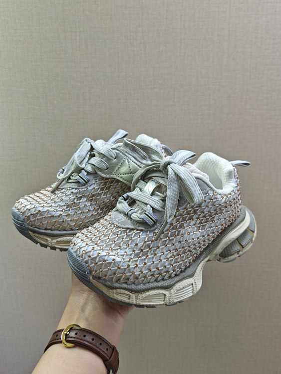 Balenciaga 3XL Fishnet Round Toe Lace-Up Low-Top Children's Shoes-4158
