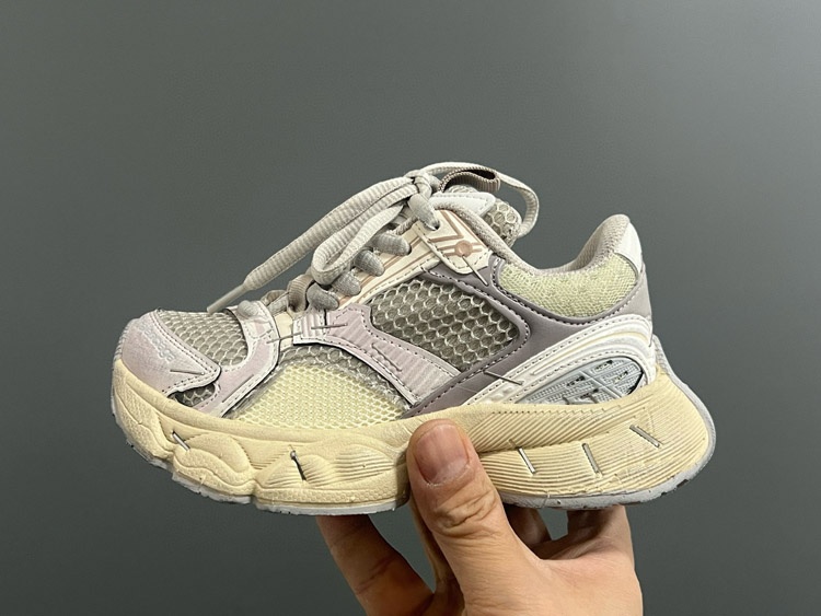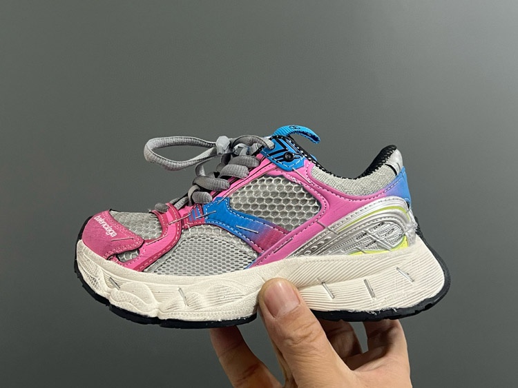 Balenciaga stapler round toe lace-up low-top distressed children's shoes-4164