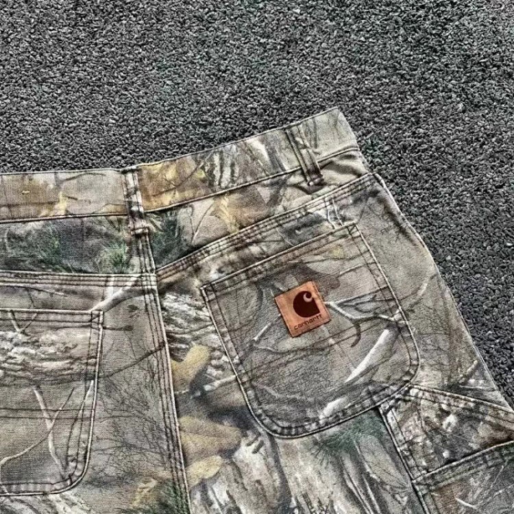 Carhartt washed camouflage distressed straight leg jeans-4932