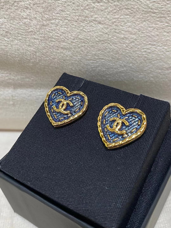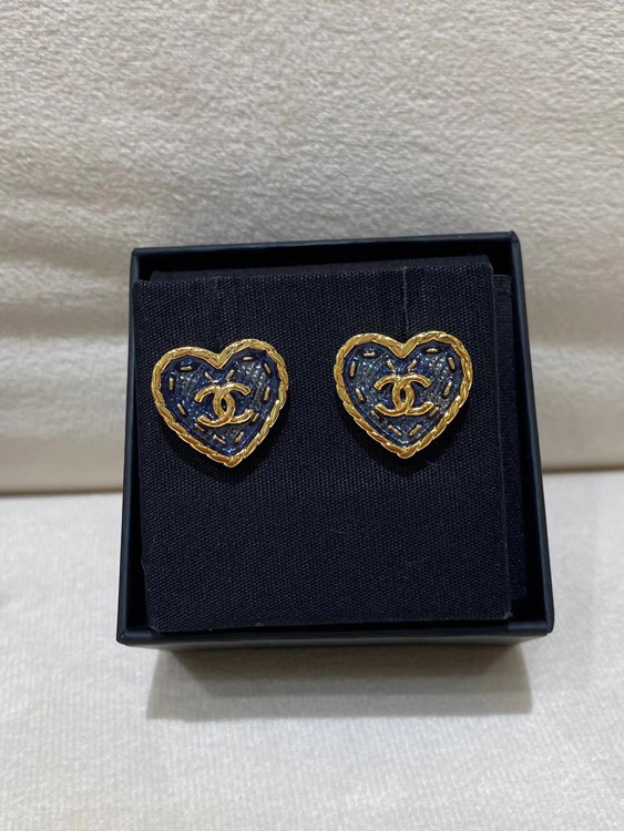Chanel earrings small black gold denim love double c earrings-3579