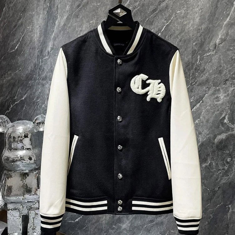 CHINISM CH contrast stitching leather embroidery baseball jacket jacket-4374