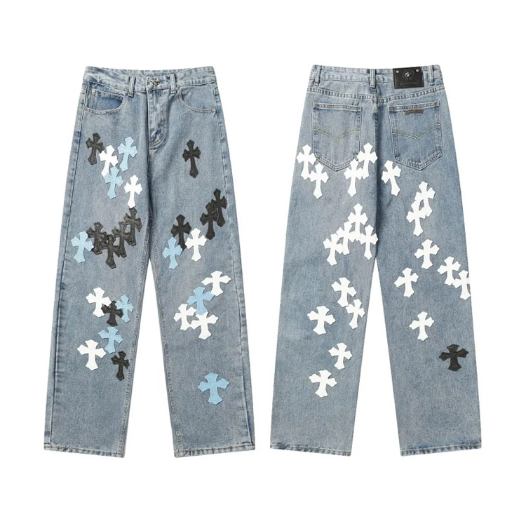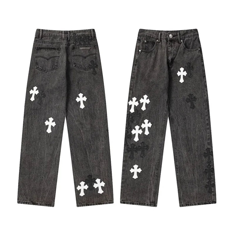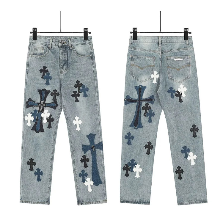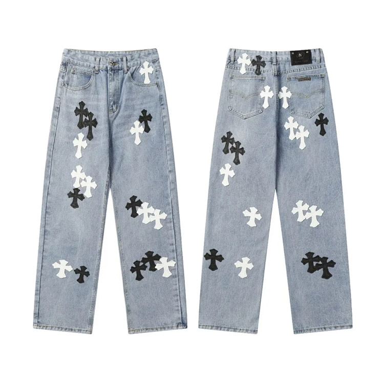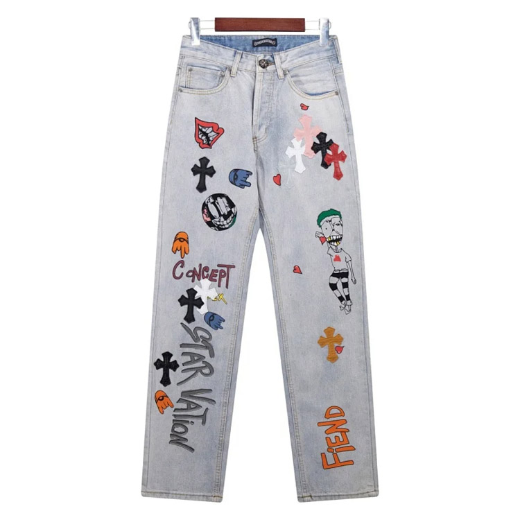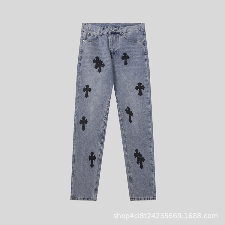 Home > Chrome Hearts CH Appliqué Embroidered Washed Loose-fitting Jeans-4939