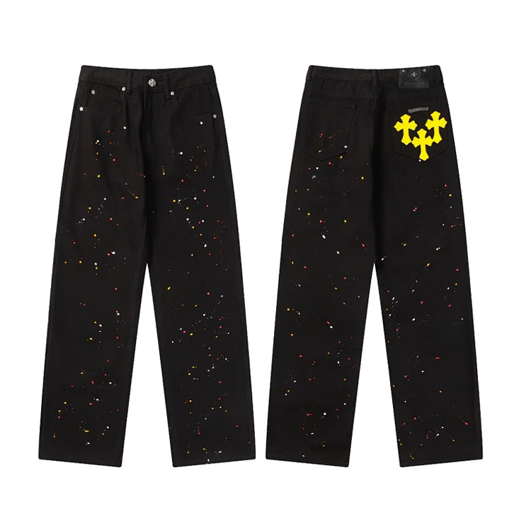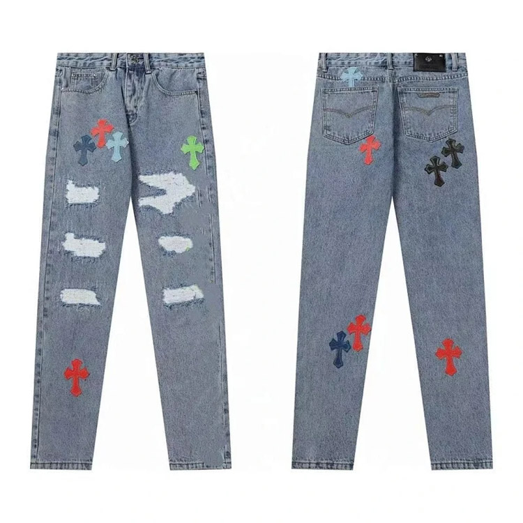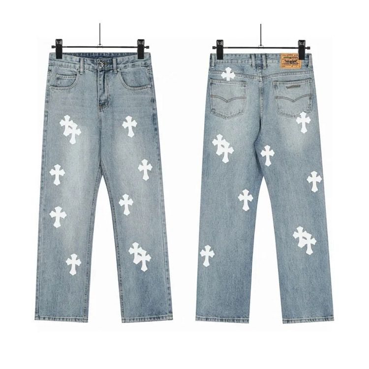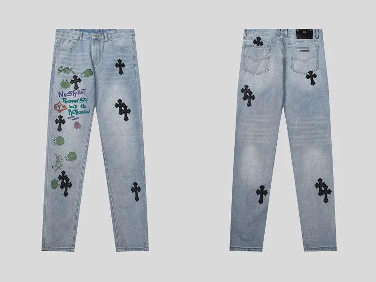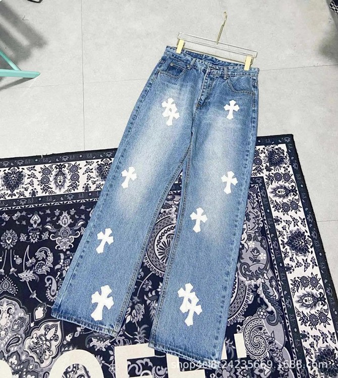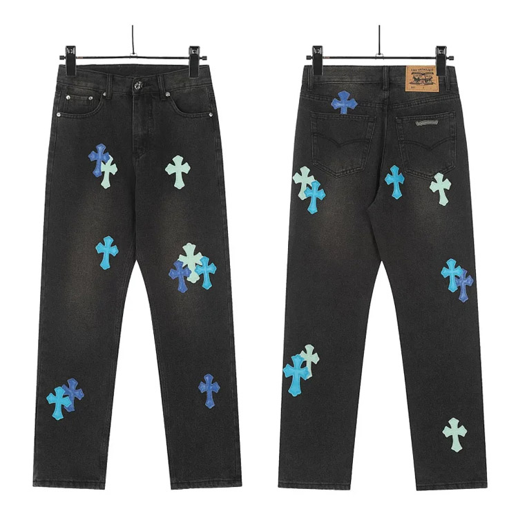 Home > Chrome Hearts CH Appliqué Embroidered Washed Loose-fitting Jeans-4939
