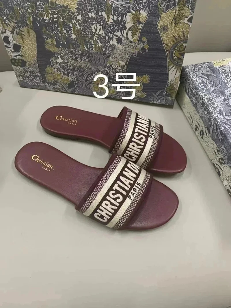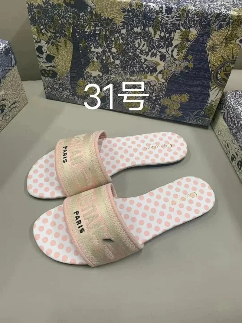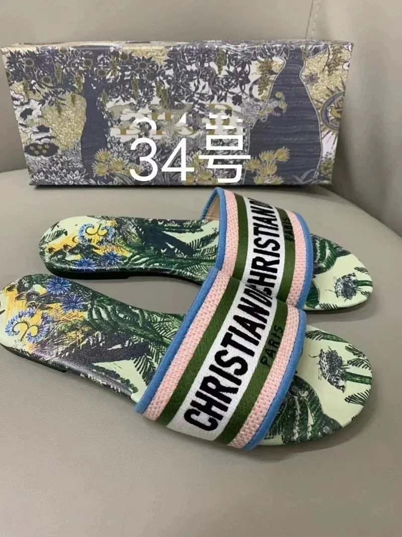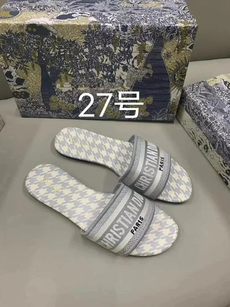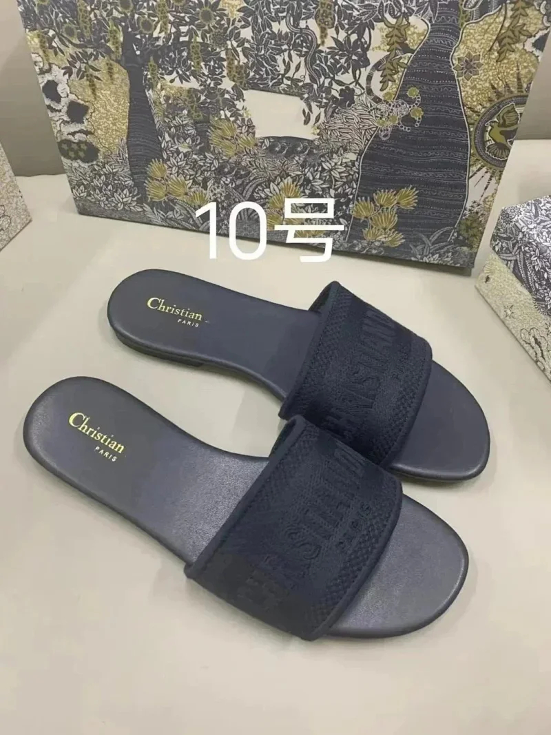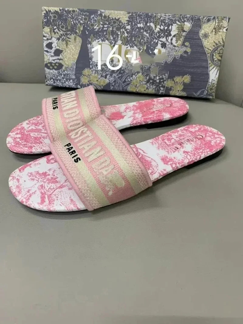 Dior 2025 new summer genuine leather letter embroidered outerwear women's slippers-2336