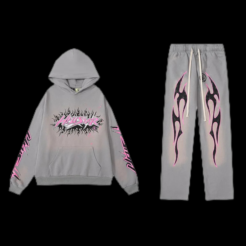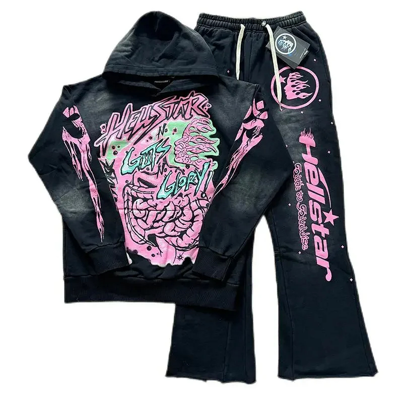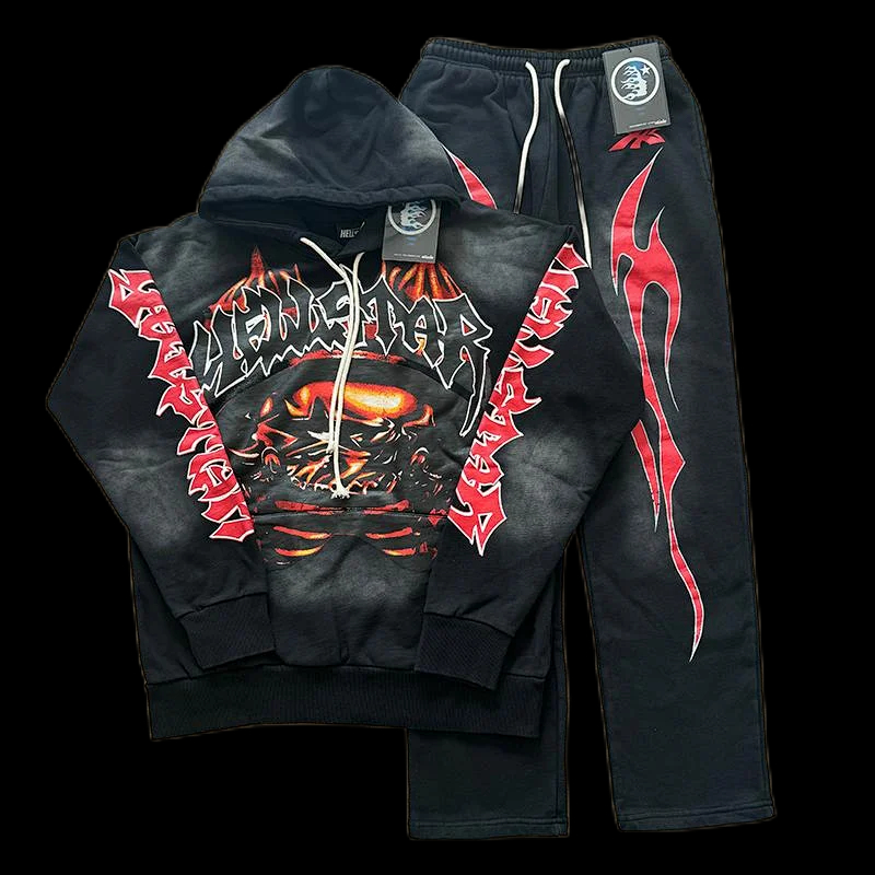Hell Star Distressed Hoodie Set-0066