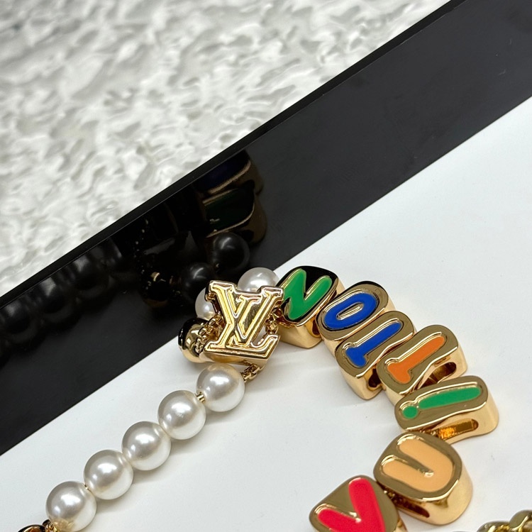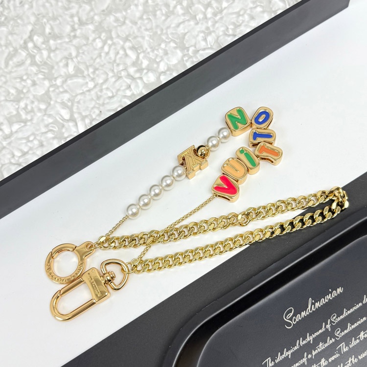 Louis Vuitton LV double chain bead pendant letter gold-decorated belt chain and bag decoration short version-3561