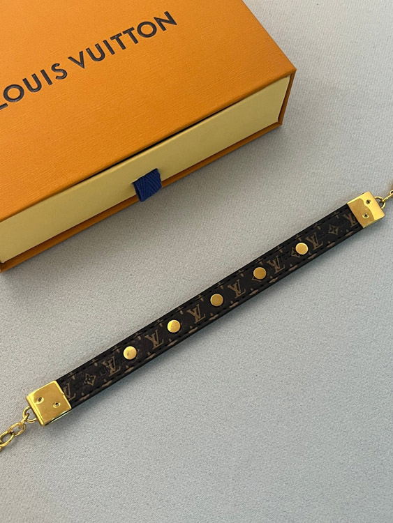Home > Louis Vuitton LV letter flower black leather gold rivet chain fine leather bracelet bracelet-3660