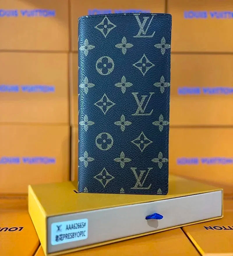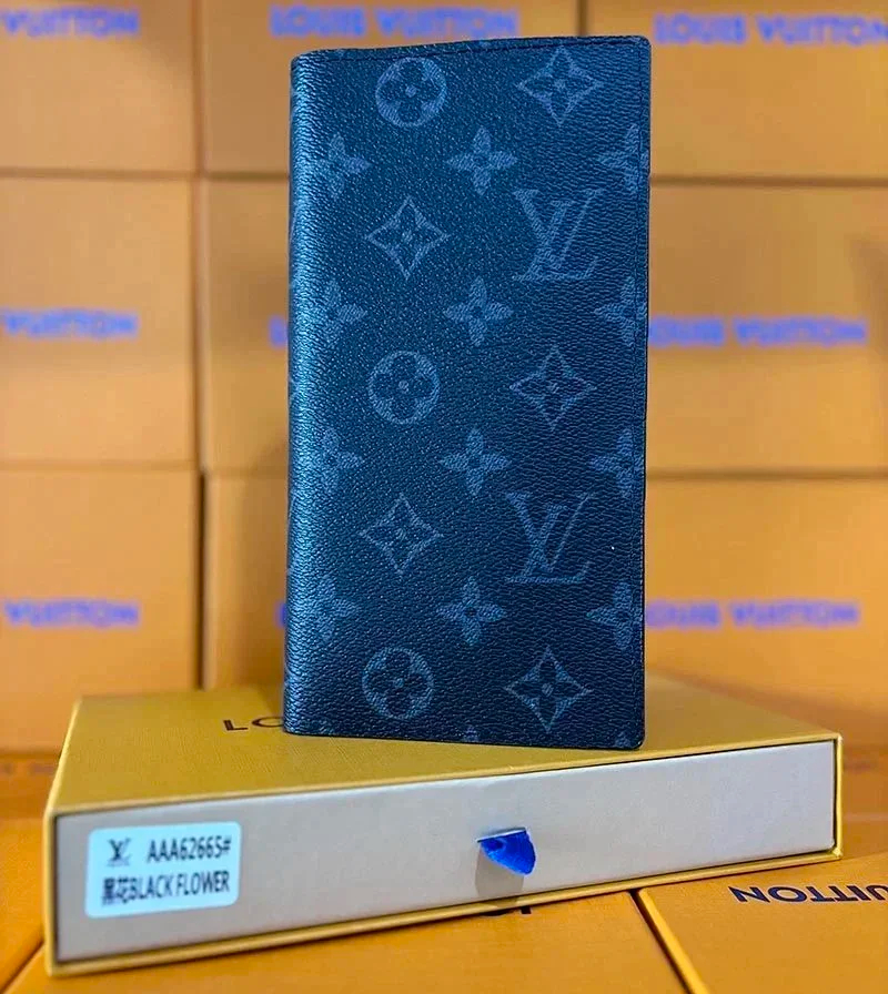 Louis Vuitton LV Men's Old Flower Black and Gray Long Wallet-2645