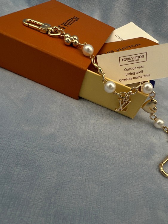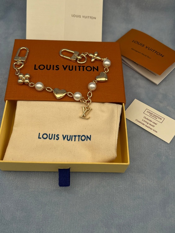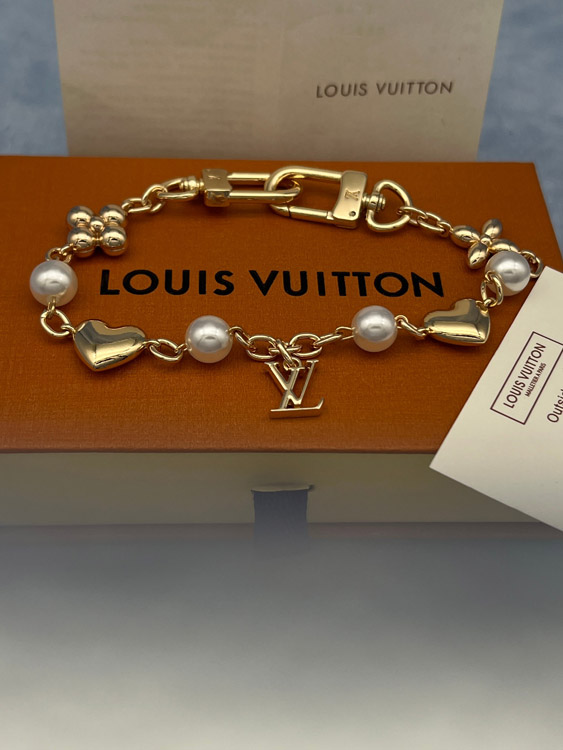 Louis Vuitton LV metal chain embellished with letters, flowers, heart-shaped pearl bracelet-3886