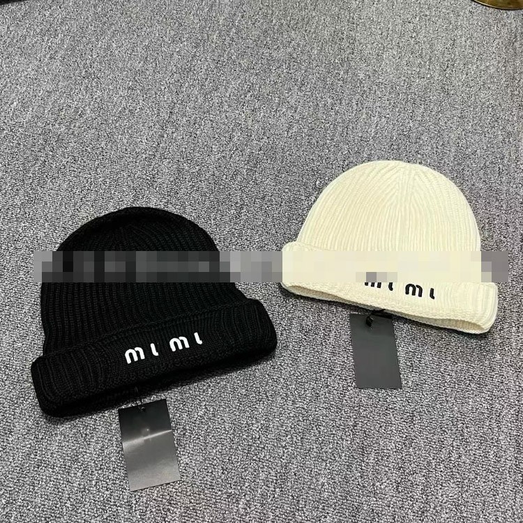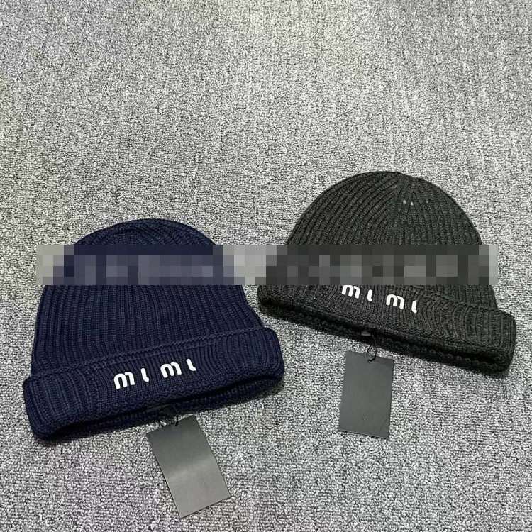 Miu Miu letter-embroidered ear-warming knitted hat-5845