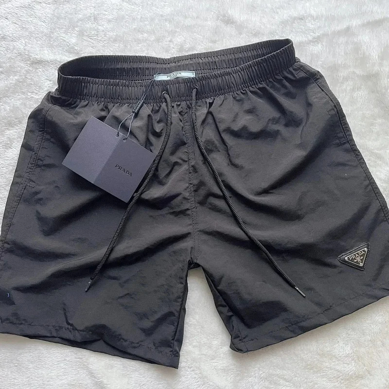 PRADA Solid Color Logo Lace-Up Straight Casual Shorts-2903