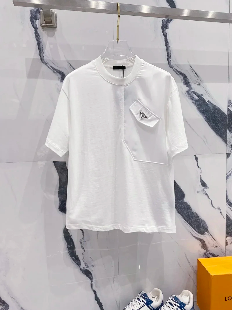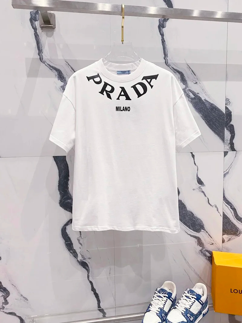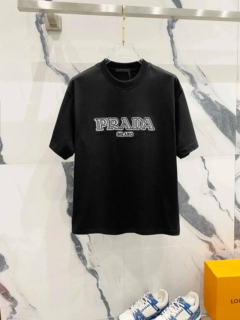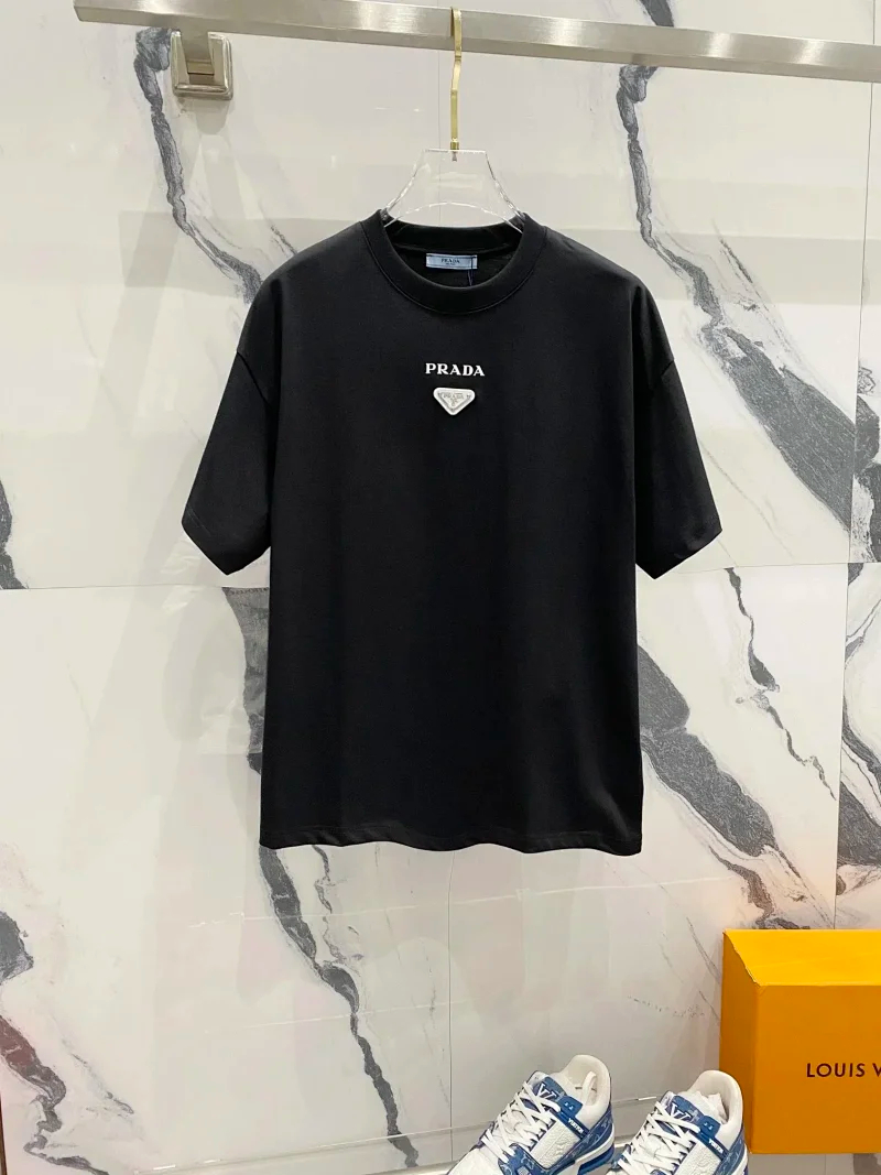 Prada Solid Color Logo Printed Round Neck Pullover Short Sleeve T-Shirt (39 styles)-2837