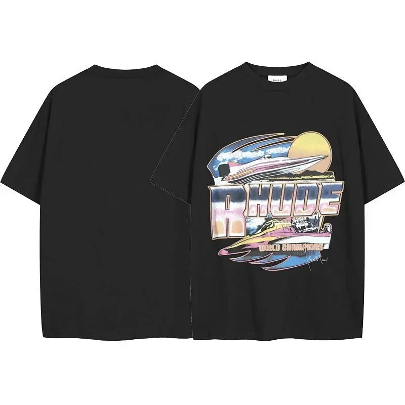 RHUDE printed round neck dropped shoulder short sleeve T-shirt (12 styles)-2773