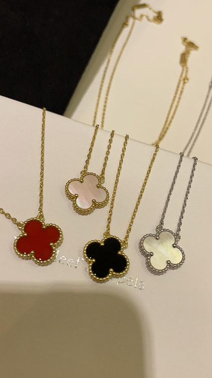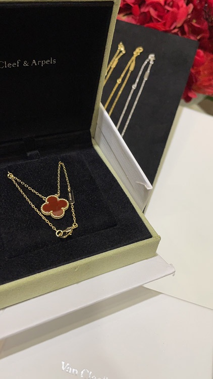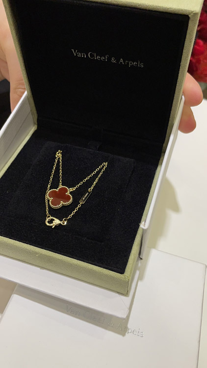Van Cleef & Arpels Carnelian Four-Leaf Clover Gold Necklace-3888