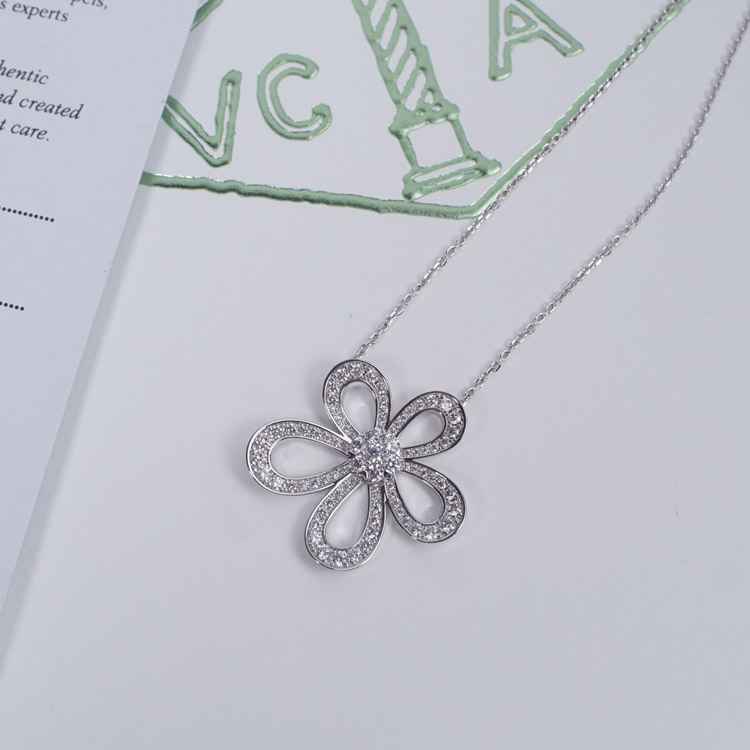 Van Cleef & Arpels platinum full diamond large flower sunflower necklace-3770