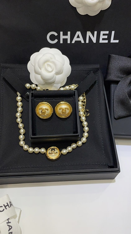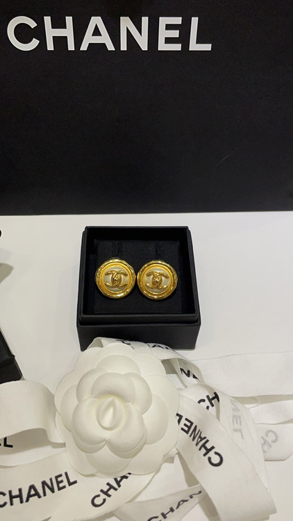 Home > Celine pearl round button gold backpack buckle double C earrings-3899