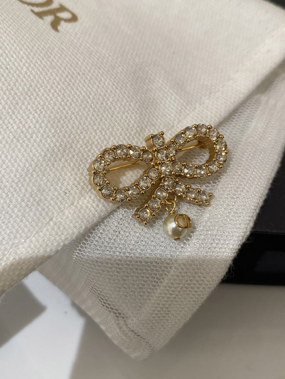 Dior full diamond bow hanging bead brooch-3954