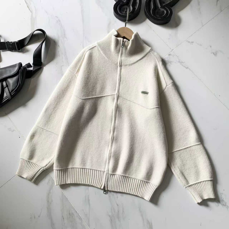Lacoste simple stand-collar zip-up knitted cardigan jacket-5893