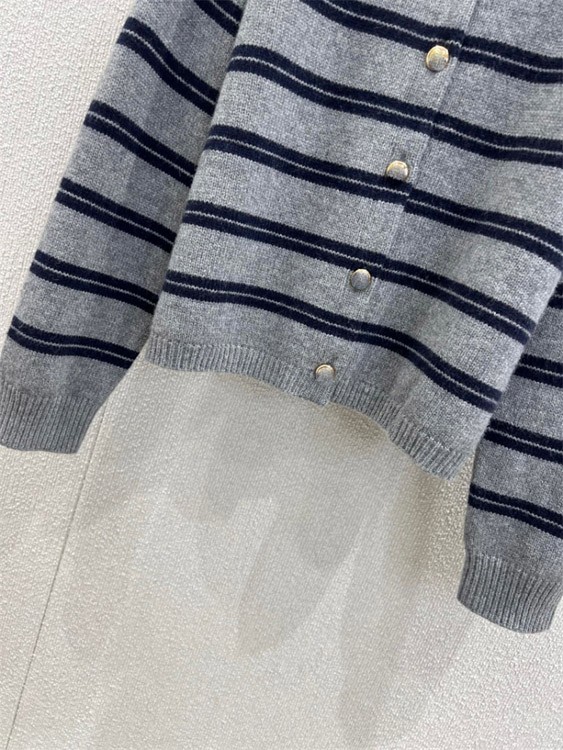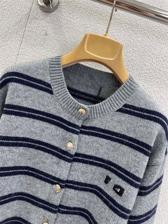 Miu Miu new loose-fitting striped long-sleeved crew neck knitted cardigan-5301