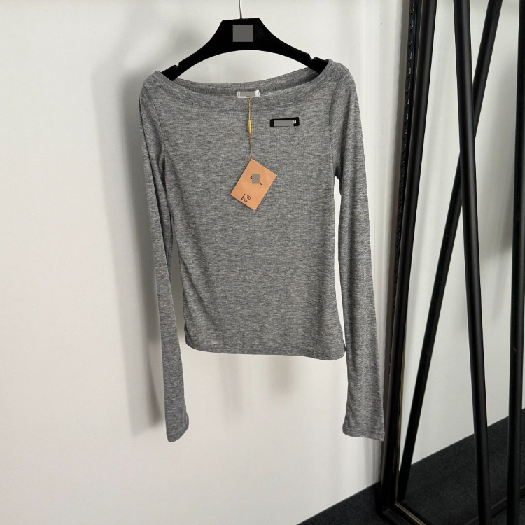 Miu Miu off-the-shoulder thin long-sleeved T-shirt-5413