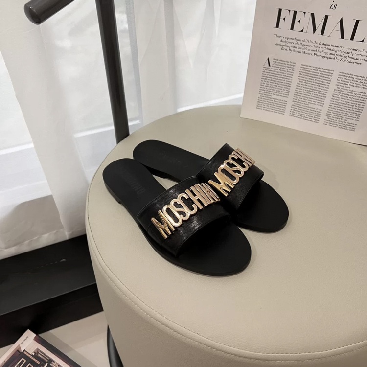 Moschino colorful leather round-toe flat sandals-5657