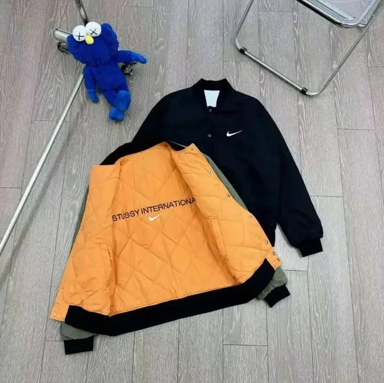 Nike x Stussy Collaboration Logo Embroidered Reversible Bomber Jacket-4815
