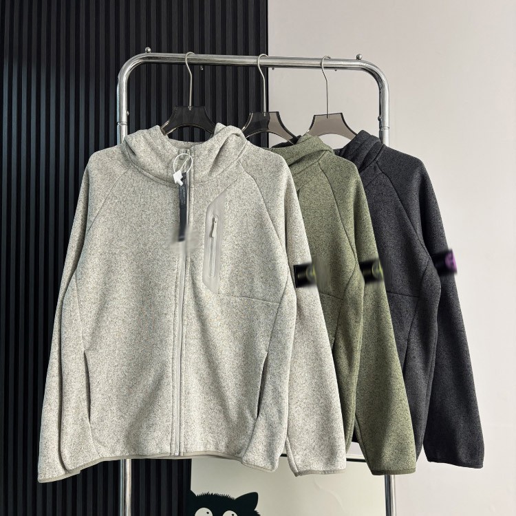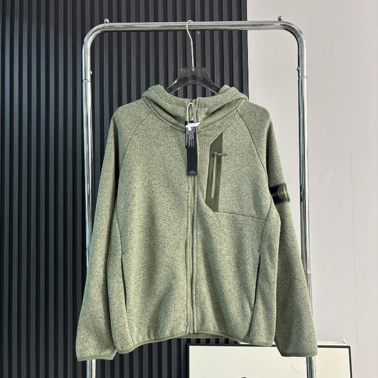 Stone Island zip-up fleece-lined hoodie jacket-5247