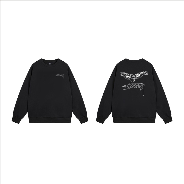 Stussy classic logo print black 8-ball long-sleeved crewneck sweatshirt-5278