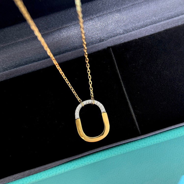 Home > Tiffany mini U-shaped lock half diamond two-tone necklace-3962